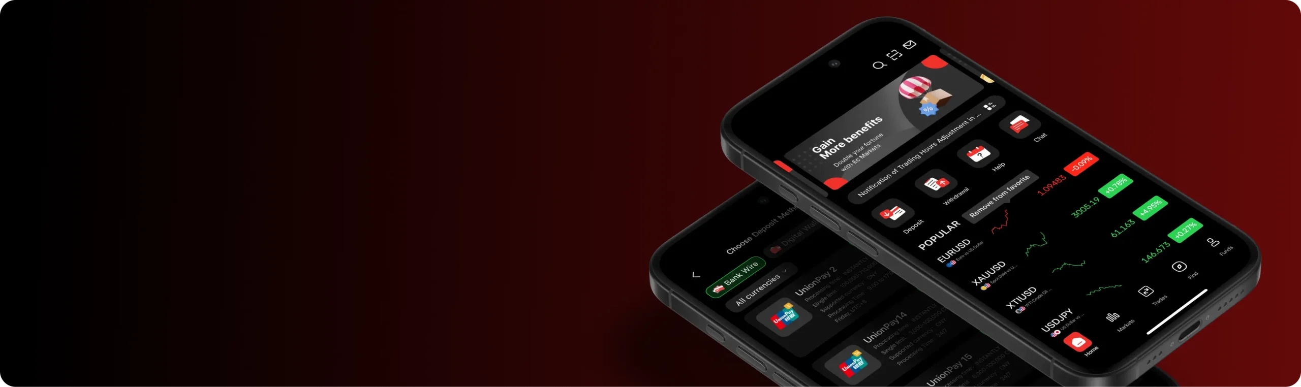 Place trades, switch between markets, and manage your account with smooth, fast navigation that feels effortless, even during peak market hours.